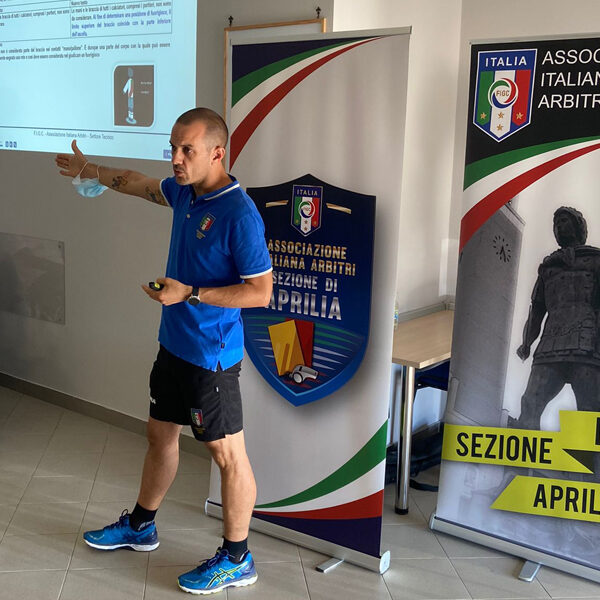 Con il prezioso contributo del Componente del Settore Tecnico, nonché associato della Sezione di Aprilia, Daniele Holweger sono state illustrate le modifiche del regolamento per la Stagione Sportiva 2021/22, accompagnate da video esplicativi. L’attenzione si è focalizzata maggiormente sul fallo di mano, e i giovani arbitri hanno visionato e commentato insieme a Daniele le varie casistiche che si potrebbero presentare durante una gara. Spazio dunque ai quiz regolamentari, la cui correzione a cura degli Organi Tecnici Giovanni Garito e Giacomo Pellegrino è stata una grande occasione per ripassare insieme il regolamento ed essere pronti al ritorno in campo.