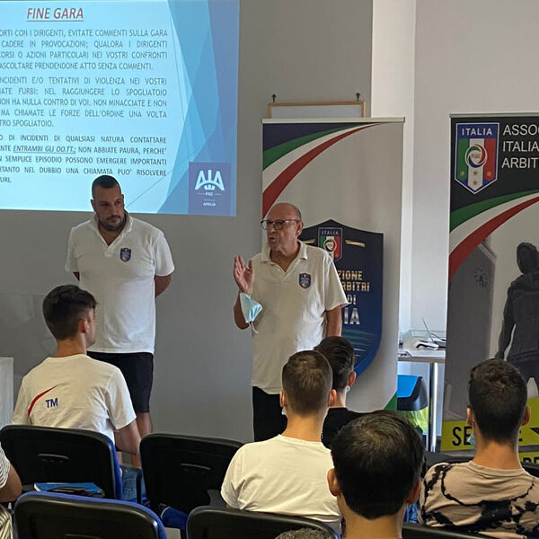 I nostri arbitri hanno assistito alla spiegazione da parte dell’Organo Tecnico e Responsabile degli arbitri della Lega Nazionale Dilettanti Giovanni Garito, del Vademecum per la nuova Stagione Sportiva e le disposizioni da seguire durante tutto il campionato. Successivamente si è passati all’aspetto comportamentale che un arbitro deve assumere, illustrato dal Referente informatico Mattia Fanelli, il quale ha focalizzato l’attenzione sull’importanza di essere arbitri sia in campo che al di fuori, ribadendo che “non c’è una seconda occasione per fare una buona prima impressione”.