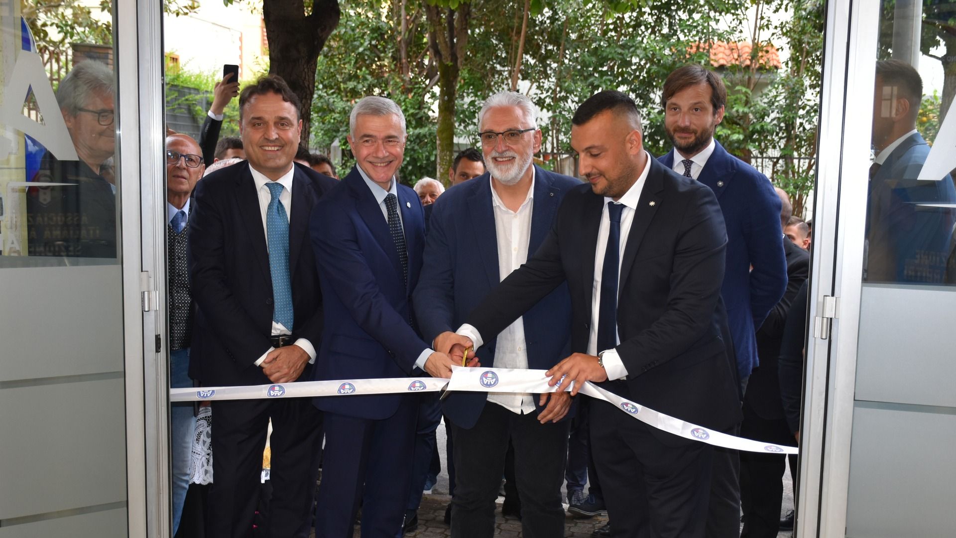Mercoledì 14 giugno la Sezione AIA di Aprilia ha inaugurato i nuovi locali sezionali dopo un anno di lavori. Numerose le presenze a livello nazionale e regionale per festeggiare quest’evento: al taglio del nastro erano presenti il Presidente Nazionale dell’AIA Carlo Pacifici, i Componenti del Comitato Nazionale Antonio Zappi e Michele Affinito, il Sindaco di Aprilia Lanfranco Principi e Monsignor Carlo Passamonti. Importanti le presenze dell’arbitro internazionale Daniele Orsato e degli assistenti Ciro Carbone e Alessandro Giallatini – la terna arbitrale che ha rappresentato l’Italia agli ultimi Mondiali in Qatar – nonché la presenza dell’arbitro internazionale Maurizio Mariani, associato della Sezione di Aprilia.