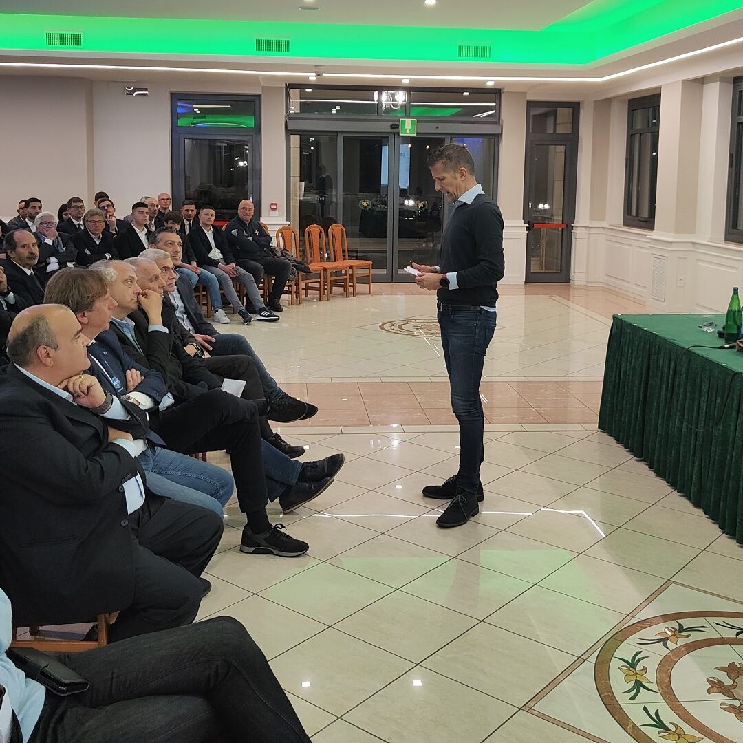 L’evento ha avuto poi inizio alle 19 con l’intervento di apertura di Giallatini e Carbone, dopodiché il mattatore della serata è stato Daniele Orsato capace di attirare l’attenzione di tutta la sala raccontando, anche attraverso alcuni filmati, la sua carriera arbitrale ripercorrendone le tappe principali: dai primi incerti sorteggi con la monetina sino alle gare internazionali raggiunte non senza difficoltà ma con tanta determinazione: “Il segreto dell’arbitraggio è questo: sudore e voglia di imparare. Scommettete ed investite sempre su voi stessi!”