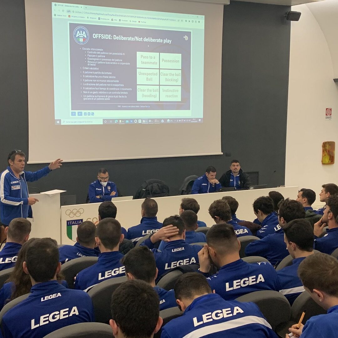 Nell’ultimo giorno di lavori, match-analysis ad organici unificati per gli arbitri e gli osservatori del Futsal, coordinati dai Componenti Francesco Massini e Valerio Milani reduci dalle soddisfazioni delle recenti Finals di Coppa Regionale.
