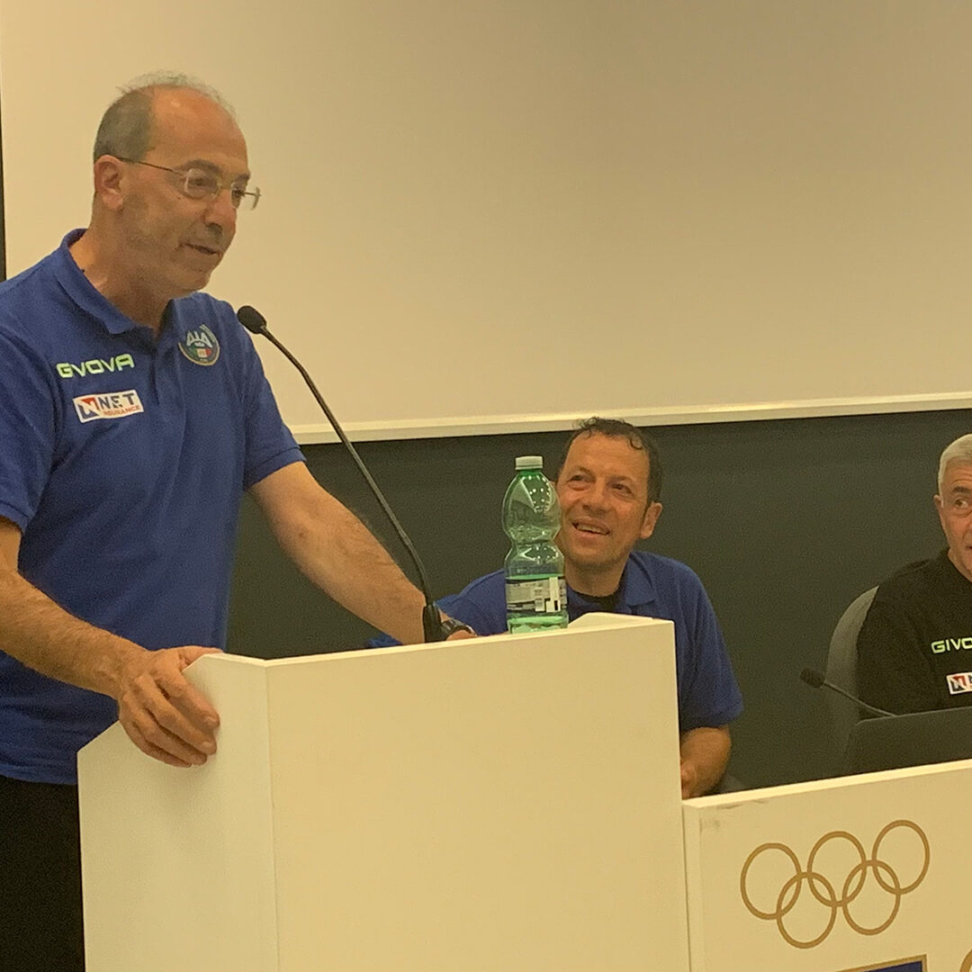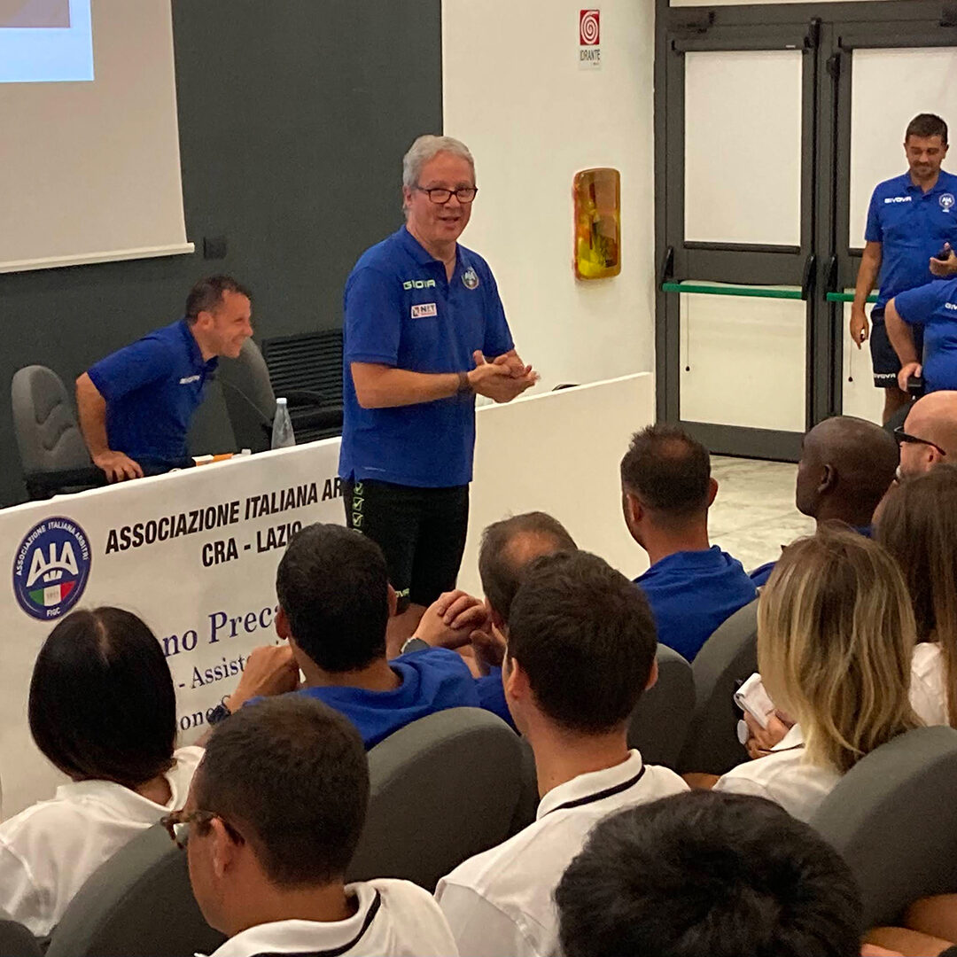 Il Componente del Comitato Nazionale dell’Associazione Italiana Arbitri Antonio Zappi, presente al raduno di Eccellenza e Promozione, dopo aver intrattenuto la platea con alcuni aneddoti sul proprio percorso arbitrale nato nel Lazio, si è concentrato sulle novità della nuova ‘governance’, in particolare sul nuovo sponsor tecnico Givova e sul progetto degli Erasmus Arbitrali condotti negli ultimi mesi, esperienza che verrà estesa ai quattro giovani più meritevoli del CRA Lazio che avranno la possibilità di andare ad arbitrare negli Stati Uniti a novembre.