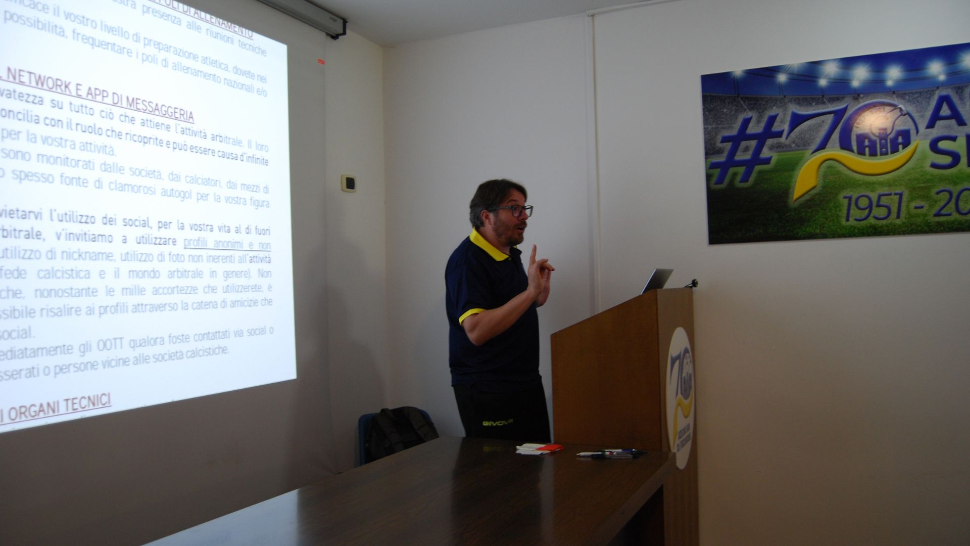 Dopo la pausa pranzo, gli arbitri sono stati raggiunti anche dagli osservatori e insieme hanno partecipato alla lezione tecnica sulla Circolare n.1, a cura del Settore Tecnico Livio Sotis, seguita poi dai quiz tecnici. Successivamente, è stato il momento di accogliere il Componente CRA, Simone Innocenzi, il quale ha mostrato ai ragazzi la realtà della regione, con l’auspicio di trovarli presto al CRA. Più tardi Ivan Magnani ha mostrato agli arbitri i posizionamenti nelle varie riprese di giuoco, con diversi filmati che sono stati commentati dai ragazzi.