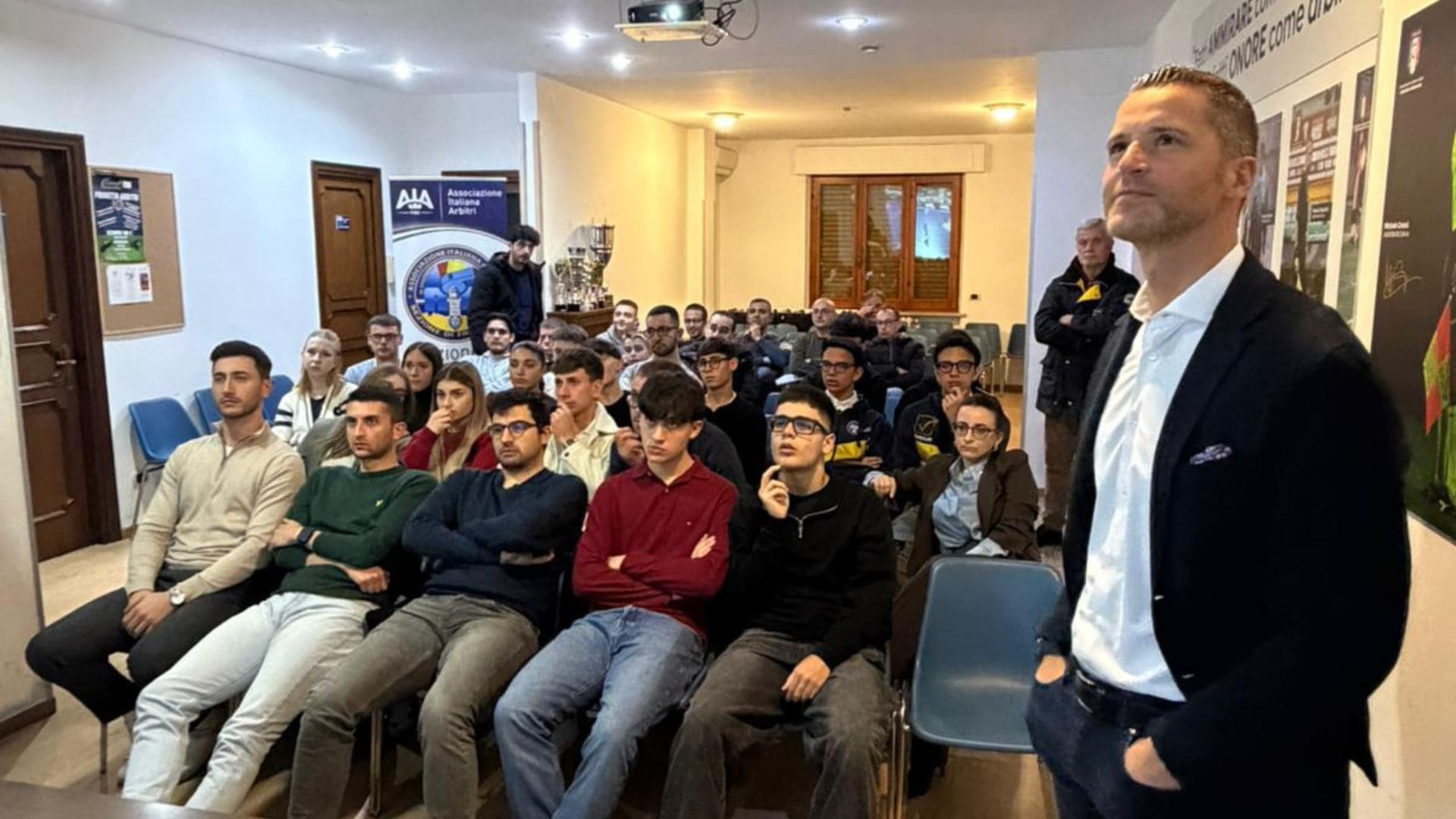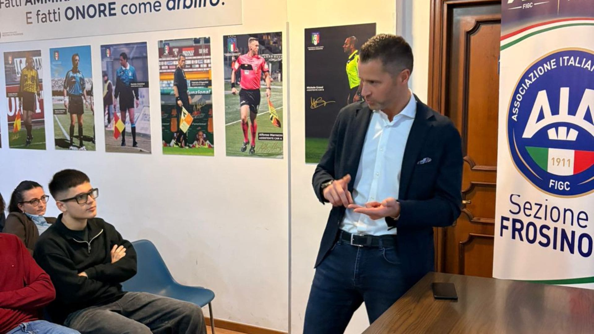 Giovedì 2 aprile 2026, la Sezione AIA di Frosinone ha avuto il piacere di ospitare l’arbitro Internazionale appartenente all’organico della CAN 5 Élite, Giulio Colombin della Sezione AIA di Bassano del Grappa, che ha tenuto una riunione tecnica obbligatoria.