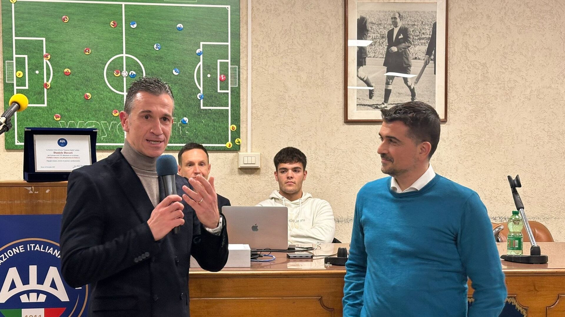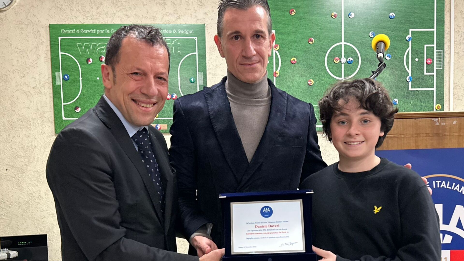 A consegnare il riconoscimento, simbolicamente, il giovane arbitro Giulio Catta, alla sua prima gara ufficiale, insieme al Vice Presidente Vicario dell’AIA Francesco Massini. Quest’ultimo ha sottolineato con forza il valore del movimento arbitrale italiano: «Dobbiamo essere orgogliosi dei nostri arbitri, riconosciuti anche pubblicamente come tra “i migliori al mondo”. Tecnica e passione devono essere sempre al centro del nostro percorso, lasciando fuori dal campo