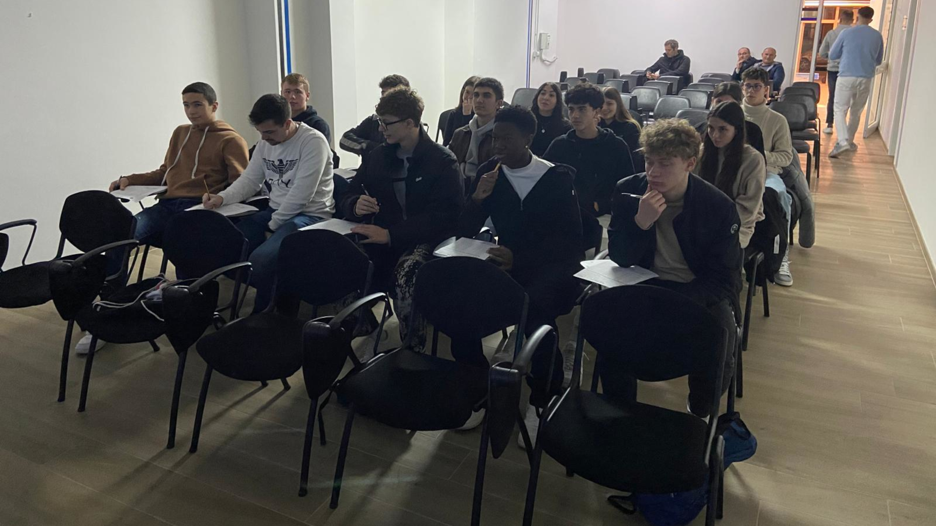 In gallery, gli aspiranti arbitri eseguono i quiz regolamentari con l’Organo Tecnico regionale Veronica Vettorel
