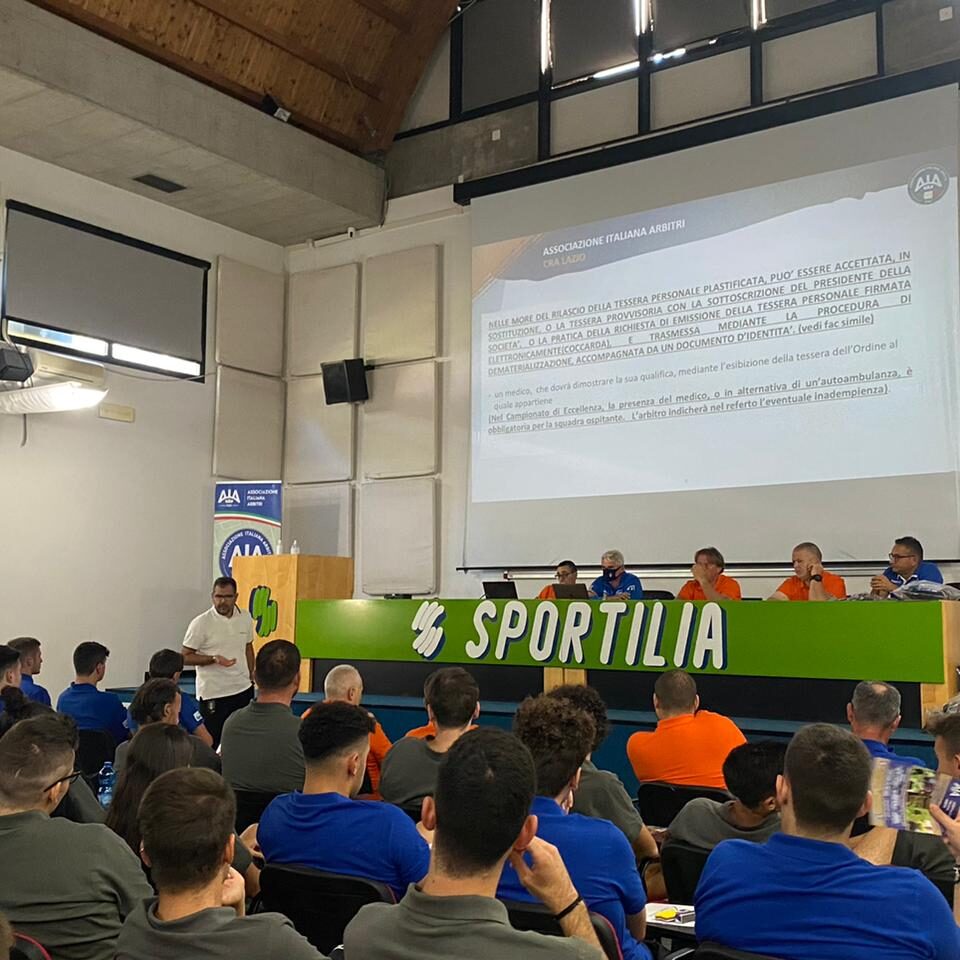 Dopo il saluto dei Presidenti di Sezione Carmelo Battaglia, Vittorio Sperati e Francesco Gubinelli il raduno entra nel vivo nell’aula “Stefano Farina” con l’intervento dell’osservatore nazionale Nazzareno Ceccarelli che ha ricordato ai giovani ragazzi il valore dell’essere arbitro, apprezzando il lavoro fatto dai Presidenti e dai loro collaboratori per l’organizzazione del raduno in un luogo così importante e significativo.