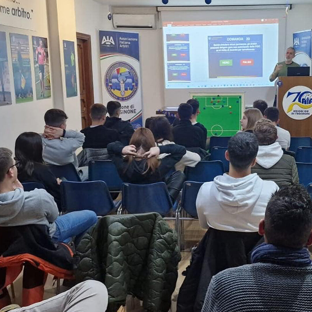 Inizia una nuova avventura per 18 ragazzi che da oggi faranno parte della grande famiglia della Sezione AIA di Frosinone. Il Presidente Paolo Iaboni, il Segretario e Coordinatore del corso Vincenzo Pasquarelli ed il Vice Presidente Vicario Ivan Magnani li hanno fatti sentire parte del gruppo fin dalle prime lezioni.