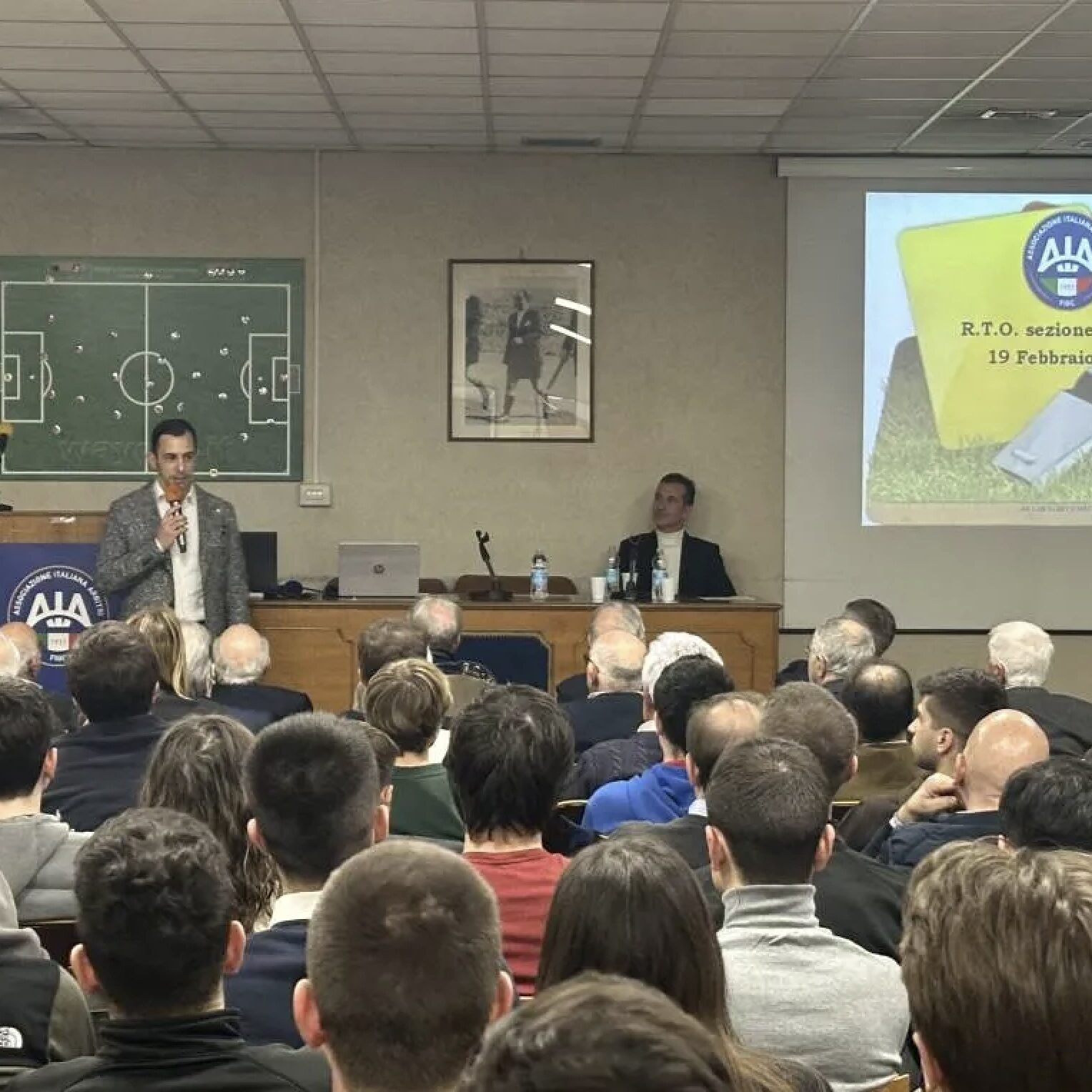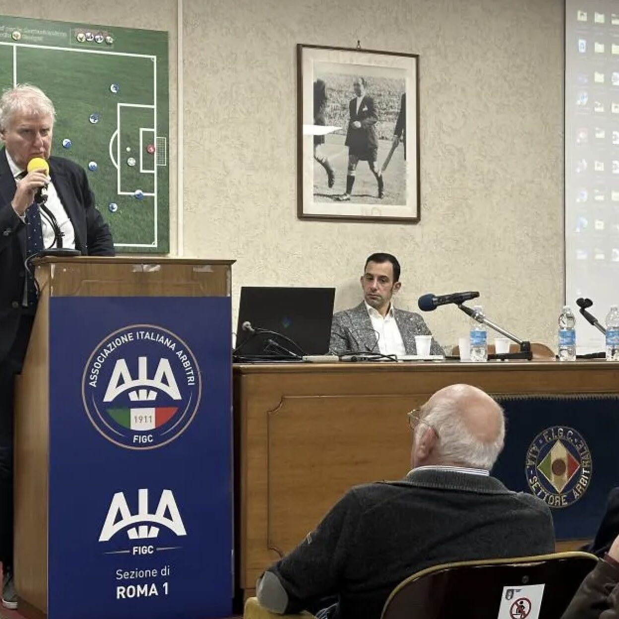 Lunedi 19 febbraio si è svolta la consueta riunione tecnica dedicata a tutti gli associati che ancora una volta ha visto una sala colma anche di presenze dirigenziali, a dimostrare la grande partecipazione ed il coinvolgimento collettivo alle tematiche e alle attività della Sezione. Un incontro che ha visto una serata a 3 tempi: la presenza dell’ospite nazionale sorteggiato per la Sezione di Roma 1, Mattia Scarpa, assistente arbitrale della sezione di Reggio Emilia, l’approfondimento e l’inserimento nel museo multimediale della hall of fame dell’Arbitro Benemerito Paolo Fabricatore e la consegna delle pergamene AIA assegnate ai colleghi che hanno compiuto 50/60/70 anni di appartenenza all’associazione stessa.