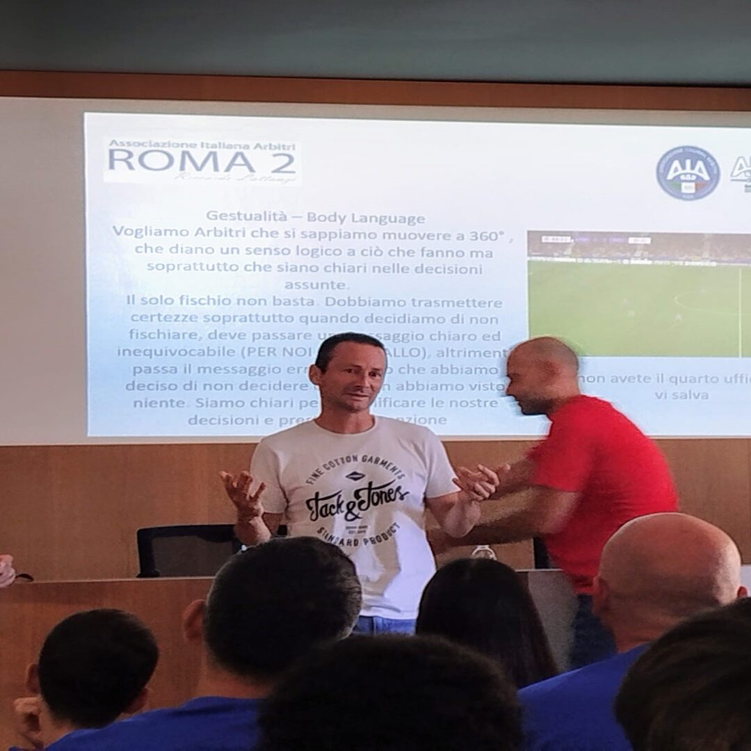 Sono stati tre giorni intensi e ampiamente partecipativi, caratterizzati sia dal lavoro di gruppo che dal dibattito costruttivo in aula. Il raduno è stato guidato dal Presidente Domenico Trombetta e dal suo staff tecnico, tra cui Luigi Galliano (coordinatore dell’Organo Tecnico Sezionale) e Francesco Maretto (osservatore a disposizione della Commissione Osservatori Nazionale Dilettanti e tutor arbitri), ed impreziosito dalla presenza di Antonio Di Blasio (Componente del Settore Tecnico dell’AIA), Francesco Valente e Claudio Pellegrini (Componenti del Comitato Regionale Arbitri del Lazio nonché associati di Roma 2), Walter Banella e, per il calcio a 5, Alessandro Ribaudo.