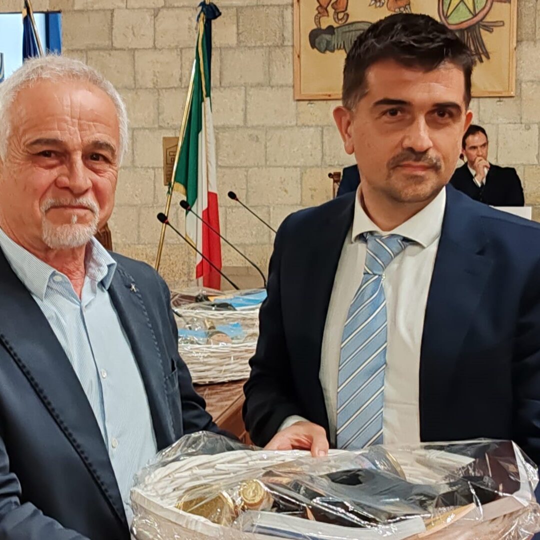 1: Andreini consegna un piccolo omaggio a Stazi;