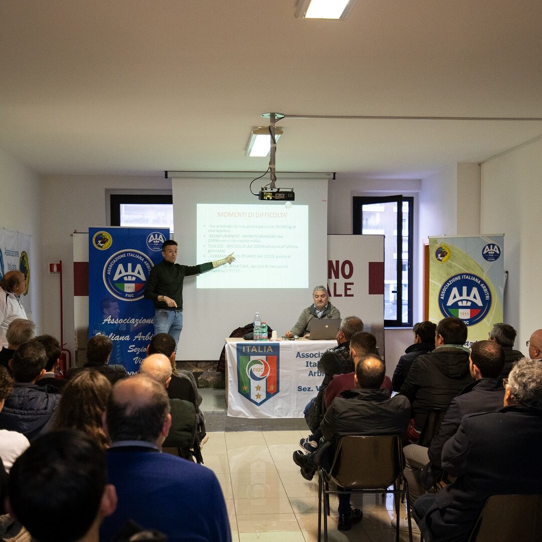 Interessante la lezione tenuta da Rapuano che ha raccontato la sua esperienza personale. “L’arbitraggio è una scuola di vita – ha esordito – per me è il sogno che diventa realtà. Dopo aver giocato a pallacanestro, a 16 anni nel 2001 ho deciso di arbitrare le partite di calcio. Pesavo 120 chili, ma con una grande forza di volontà e l’allenamento in pochi mesi ne ho persi ben 35. Ho avuto anche io dei momenti negativi – ha proseguito – ma li ho superati scendendo in campo con l’unico obiettivo di divertirmi. Occorre sempre mettersi in discussione, con sacrificio e passione. Servono equilibrio mentale e serenità.”