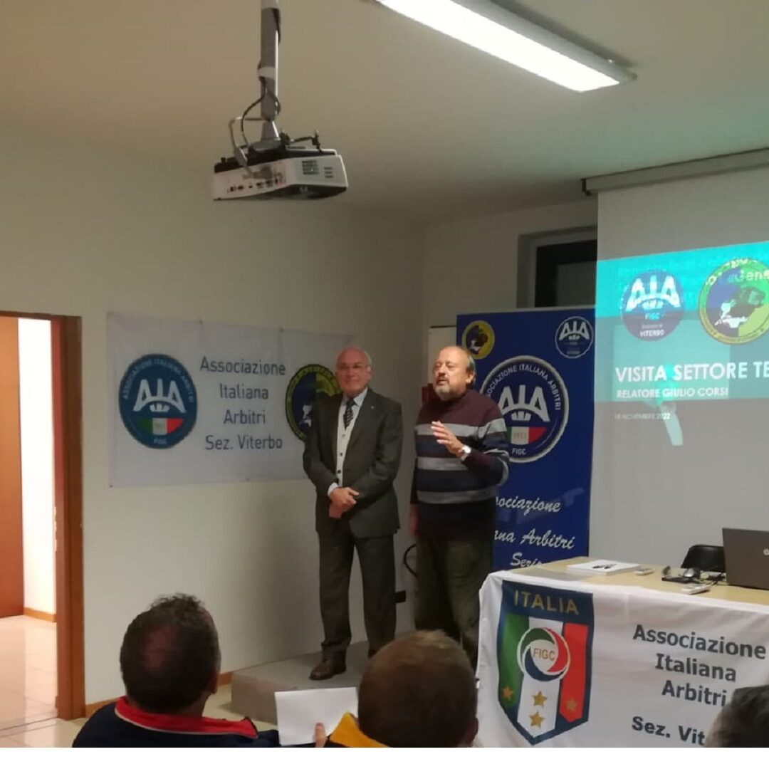 Si è svolta a Viterbo una riunione tecnica tenuta da Giulio Corsi, osservatore arbitrale e Componente del Settore Tecnico dell’AIA. Un curriculum di alto livello quello del relatore: romano, dirigente di azienda in pensione, è stato assistente arbitrale in serie A e osservatore arbitrale a livello nazionale. Tra i tanti incarichi oggi ricopre anche quello di tesoriere dell’Associazione Nazionale Stelle, Palme e Collari d’Oro al Merito del CONI e del Comitato Italiano Paralimpico.
